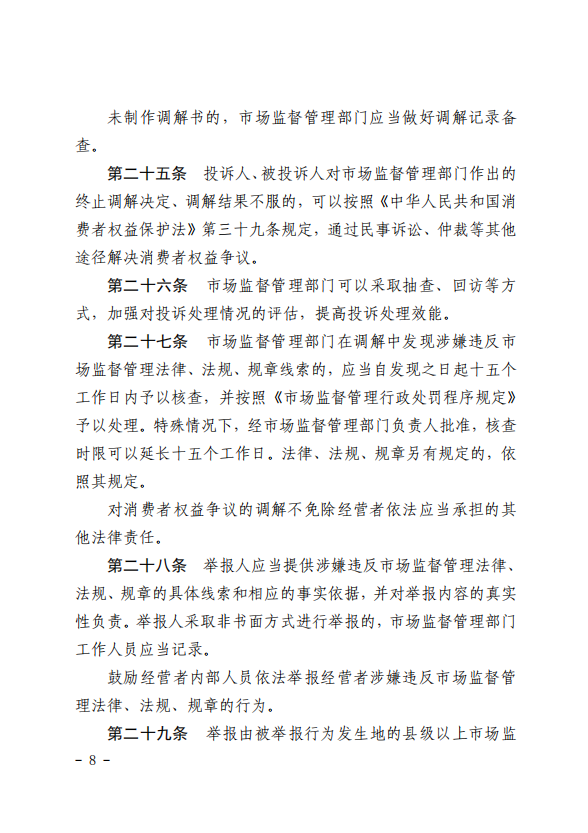 为适应市场监管新形势新要求、提升投诉举报处理质效、更好保护消费者和经营者合法权益,近日,市场监管总局修订发布规章第121号令《市场监督管理投诉举报处理办法》(以下简称《办法》)。《办法》的修订实施将有力健全统一权威、科学高效、便民利企的市场监管投诉举报处理体系,更好服务经济高质量发展、保障人民高品质生活。