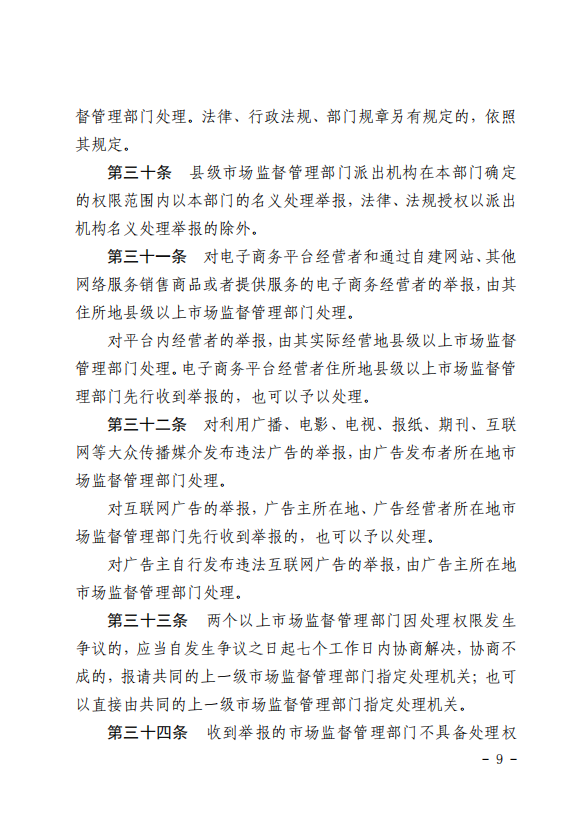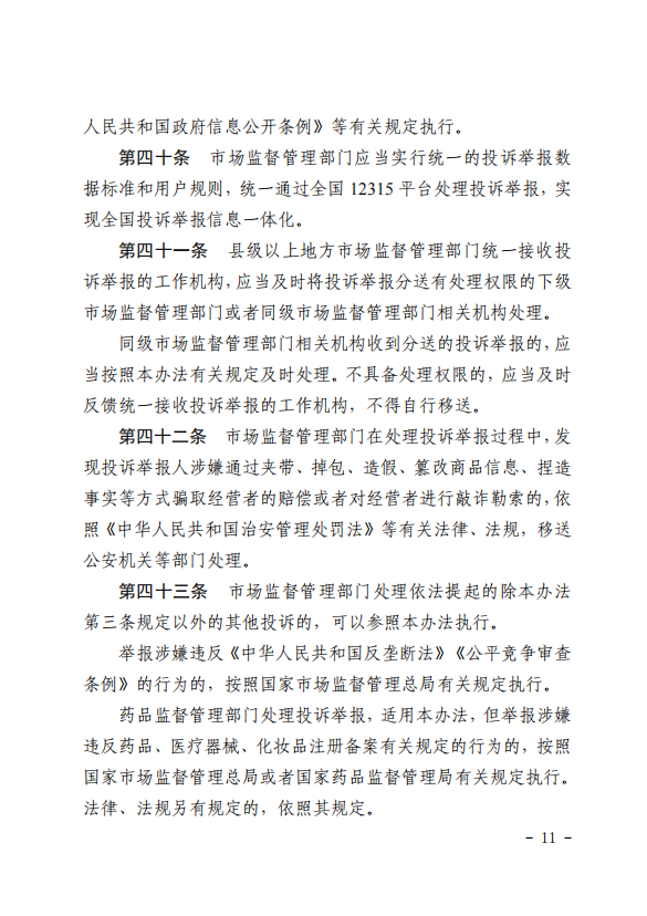 优化举报程序,提高处理效能。完善举报的形式要件,提高举报的真实性和有效性;新增规定重复举报的不予处理和并案处理机制,优化举报告知程序,提高基层行政效率;删除广告领域的举报移送程序,强化同案管辖;明确统一通过全国12315平台处理,加强大数据分析应用。
