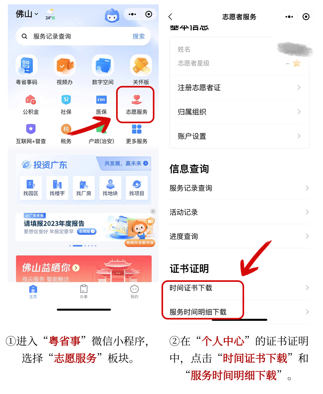 4.特殊情况处理:若志愿者本人在五年内有参与佛山市范围内的志愿服务,但在广东省“i志愿”平台未有相关服务记录的,具体处理办法如下:志愿者本人未记录志愿服务时数,按照“谁组织谁记录谁证明”的原则,由志愿者本人联系参与过的志愿组织通过“i志愿”平台进行历史活动补录。申请人应在提交资料前完成补录工作,非i志愿系统导出的服务记录不予认证。证明主体因合并、分立、解散或其他原因无法进行历史活动补录的,承接其工作的单位或其上级单位(主管部门)可以作为主体接续办理相关事宜。