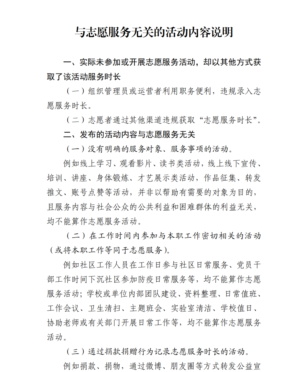 3.培训、开会、做活动观众、参与献血、办公值班、聚餐、外出参观交流等非服务性质的记录或属于在上班时间做本职工作范围的服务。