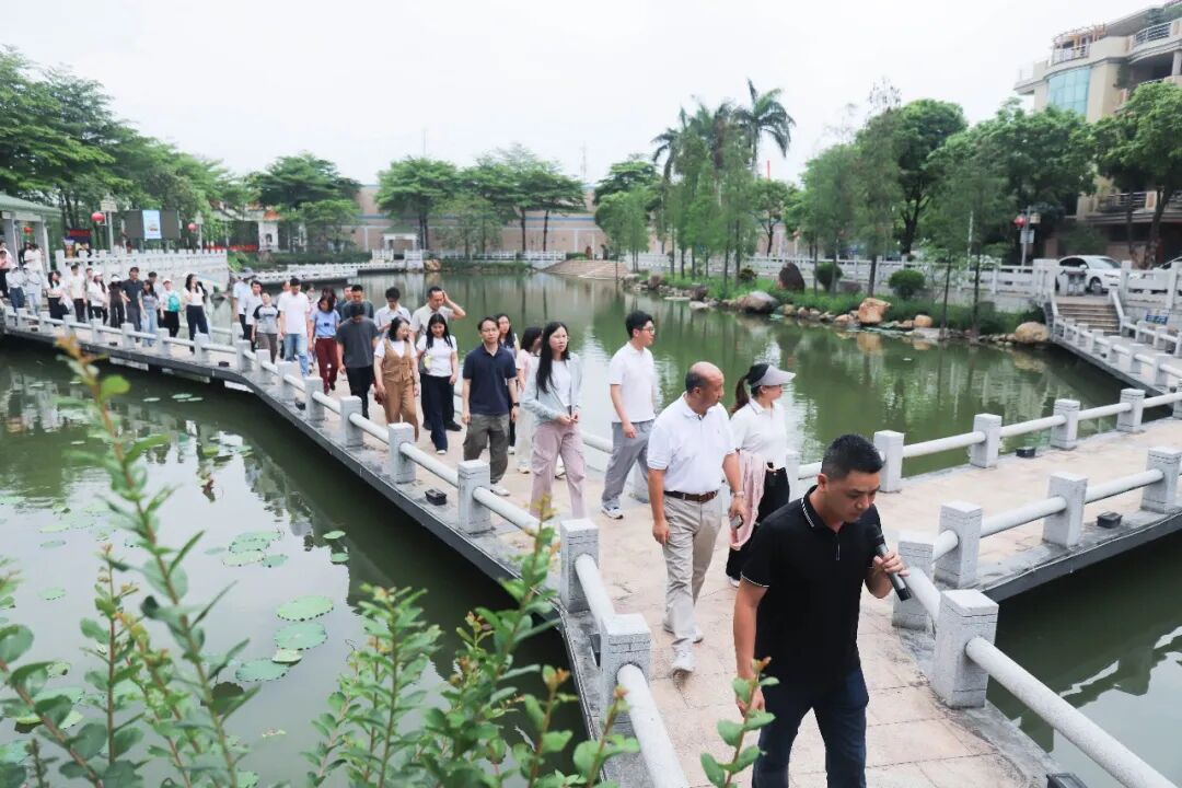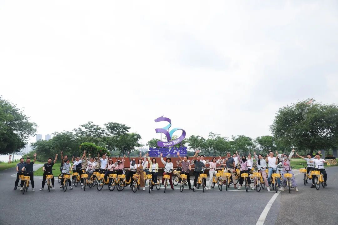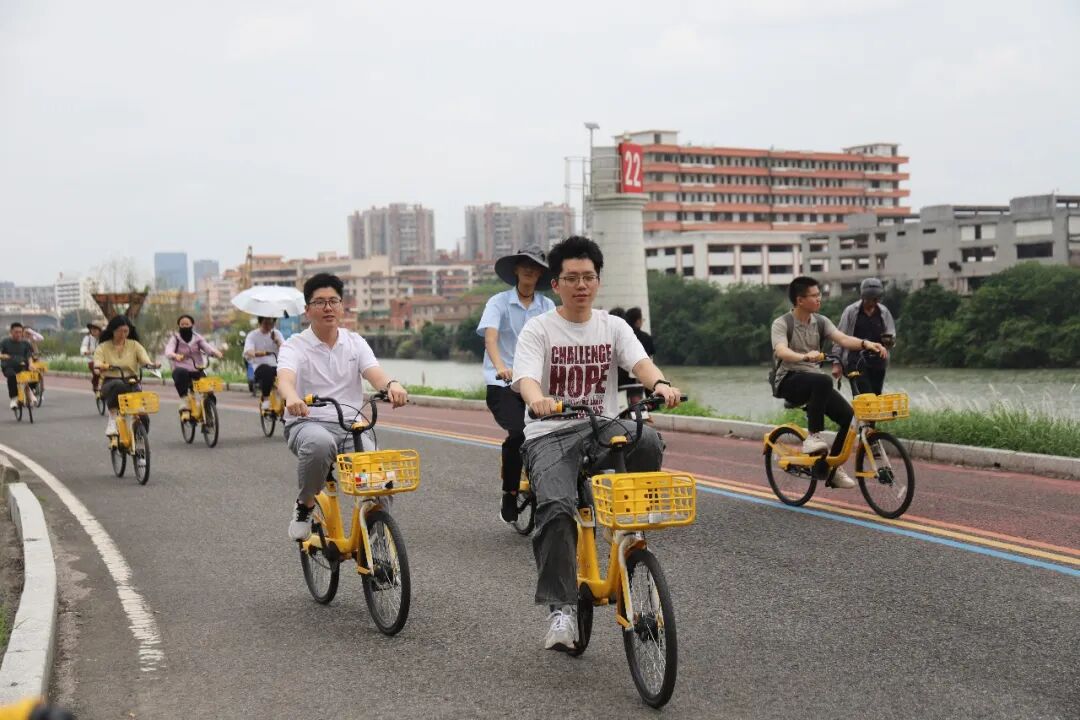 活动安排了骑行环节,职工代表们骑着共享单车沿叁零公路河堤,途经柏塱炮楼、洲尾围生态公园,尽览两江堤岸绿景,实地感受户外经济与岭南水乡生态魅力,思考生态文旅与宜居宜业宜游建设的融合路径。