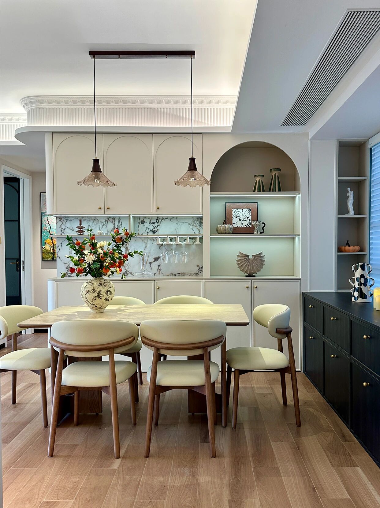 弧形拱门+柔润线条+材质混搭