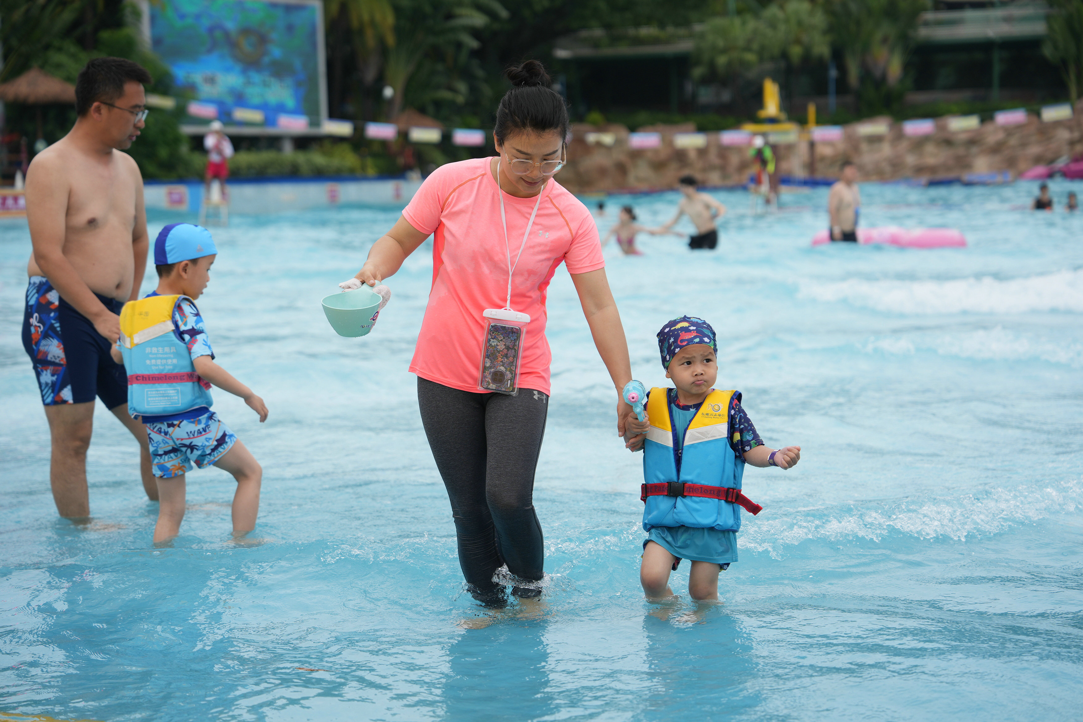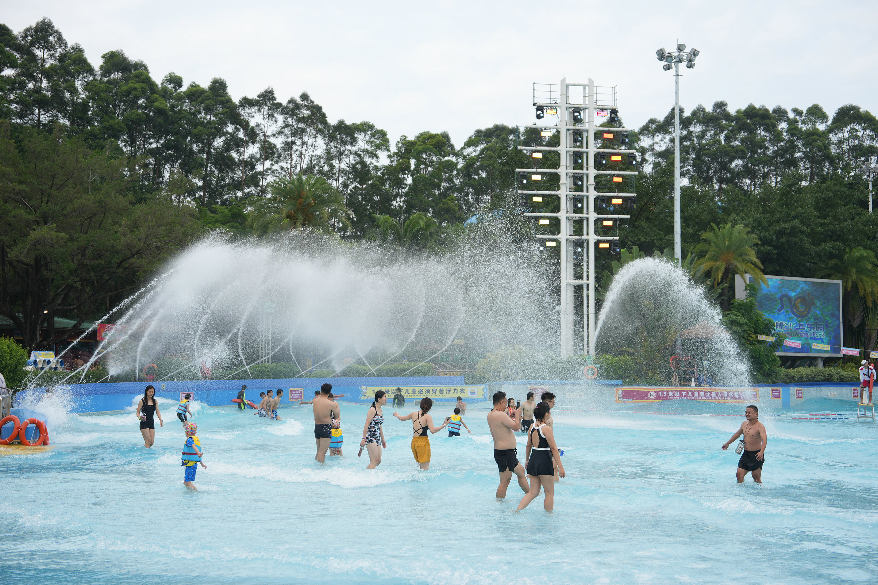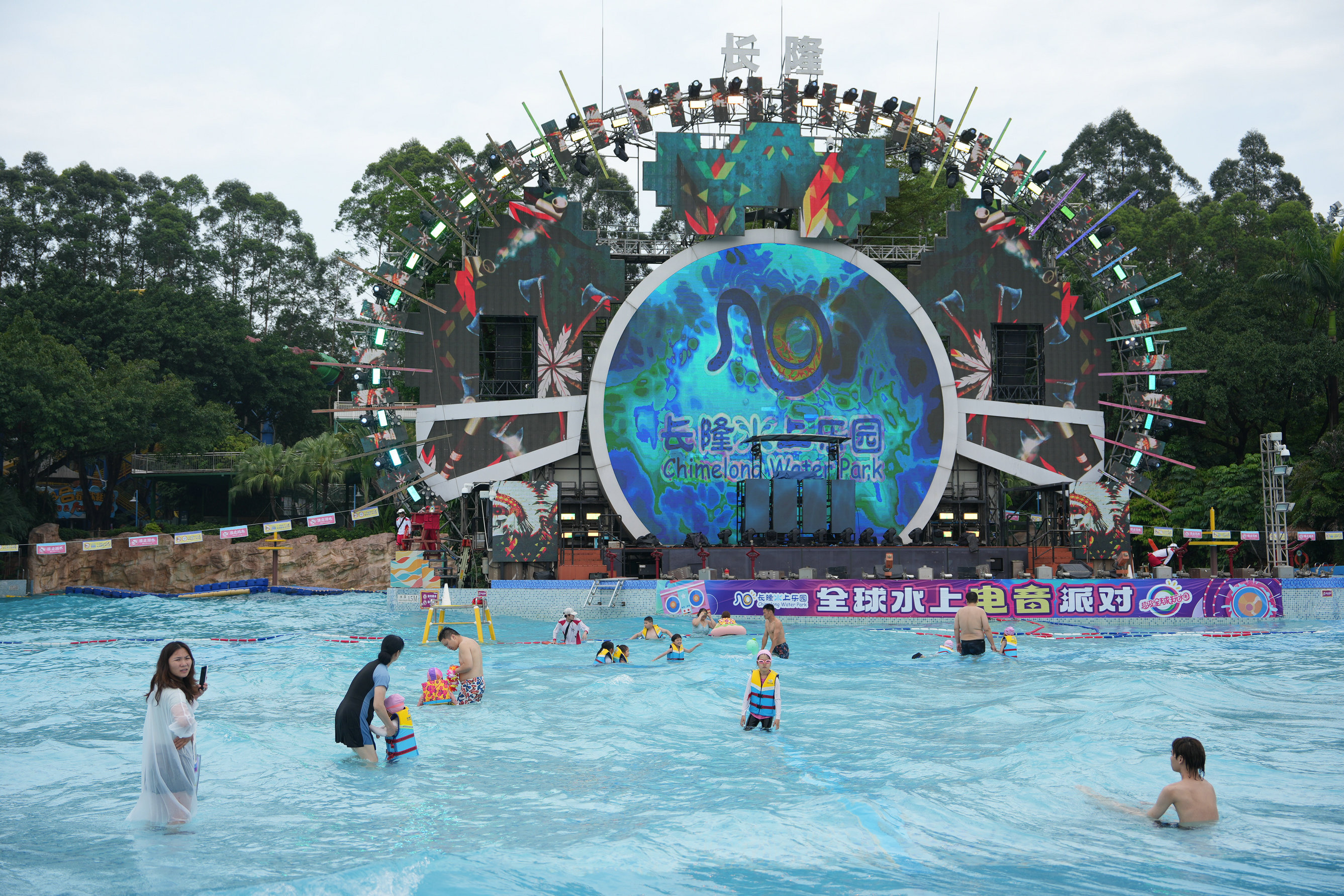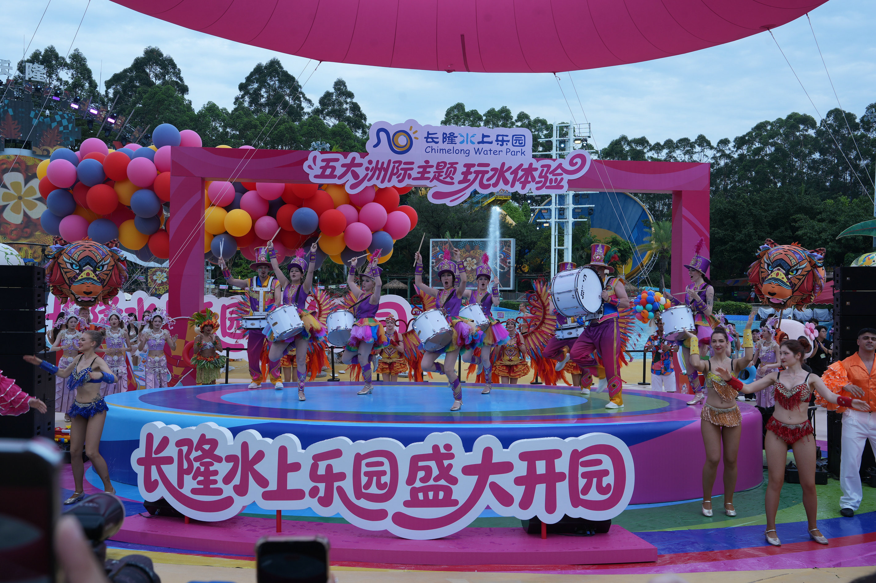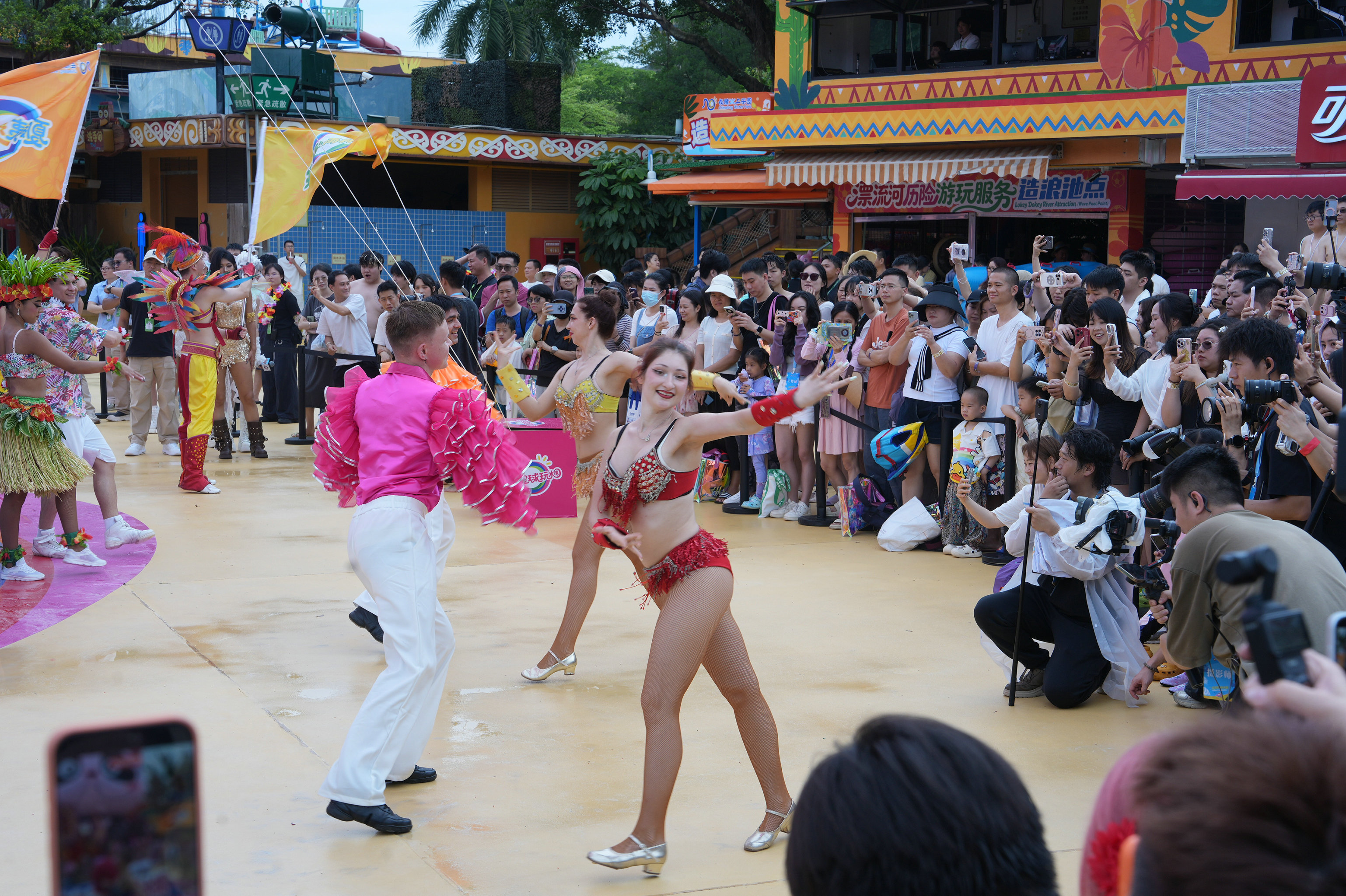 “超级全球玩水圈”五大洲际主题玩水新体验于当日同步开启,一站式解锁多元环球风情:东南亚风情玩水圈里,泰式风情歌舞轮番上演;西欧盛夏玩水圈里,欧式鼓乐演奏搭配地中海漫天泡泡秀;亚马逊雨林玩水圈主打松弛疗愈,搭配舒缓的集体瑜伽体验;热辣拉丁玩水圈则以热情桑巴派对等项目点燃夏日激情;夏威夷沙滩玩水圈是亲子家庭的欢乐天地,草裙舞派对轮番上演。