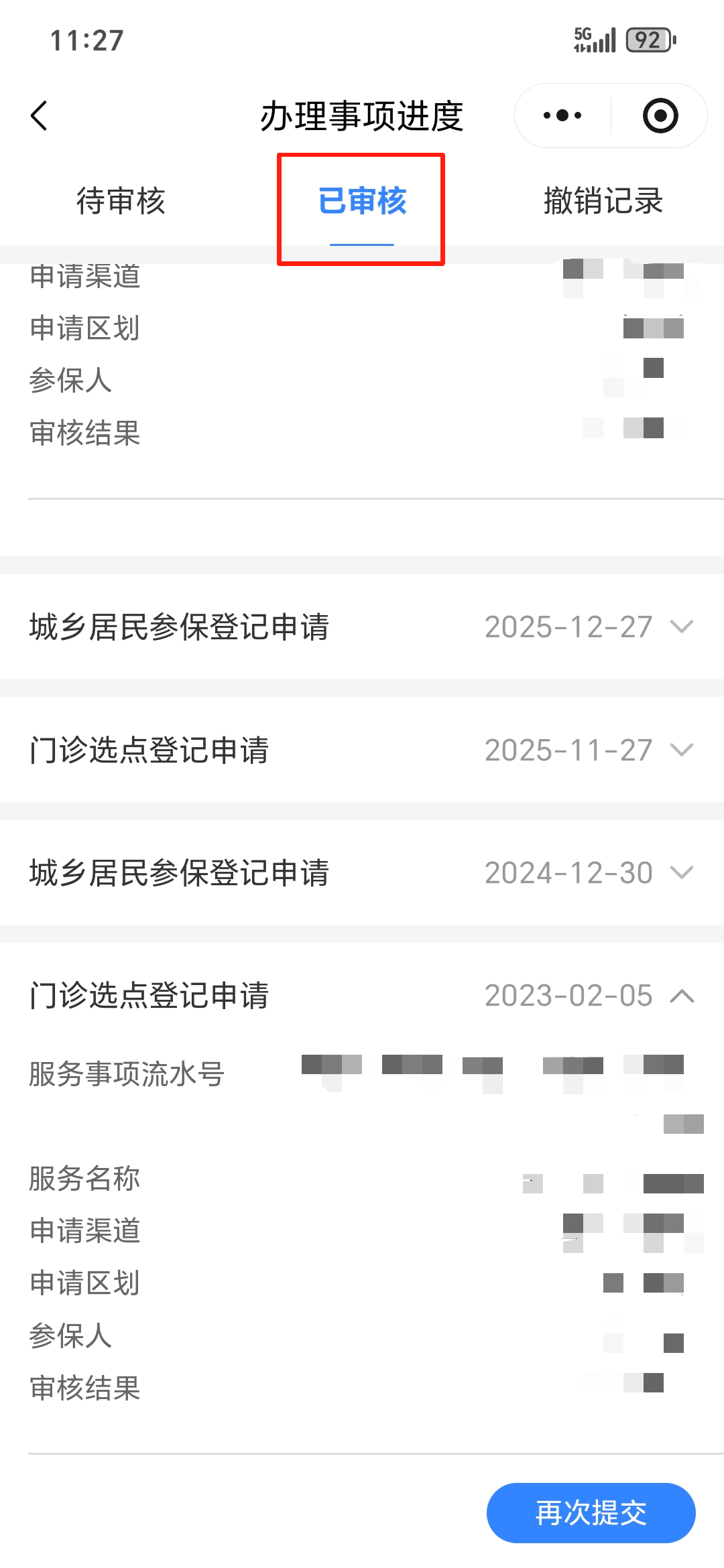 3、如点击“已审核”可查看审批结果。