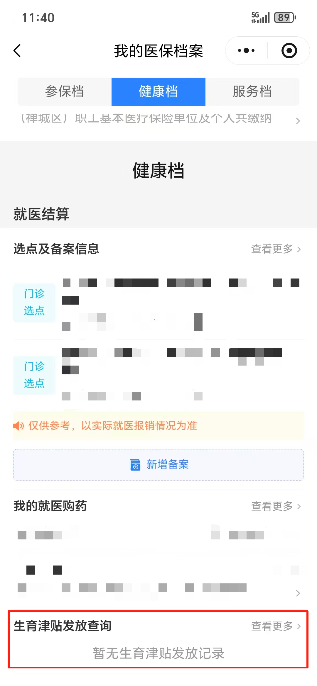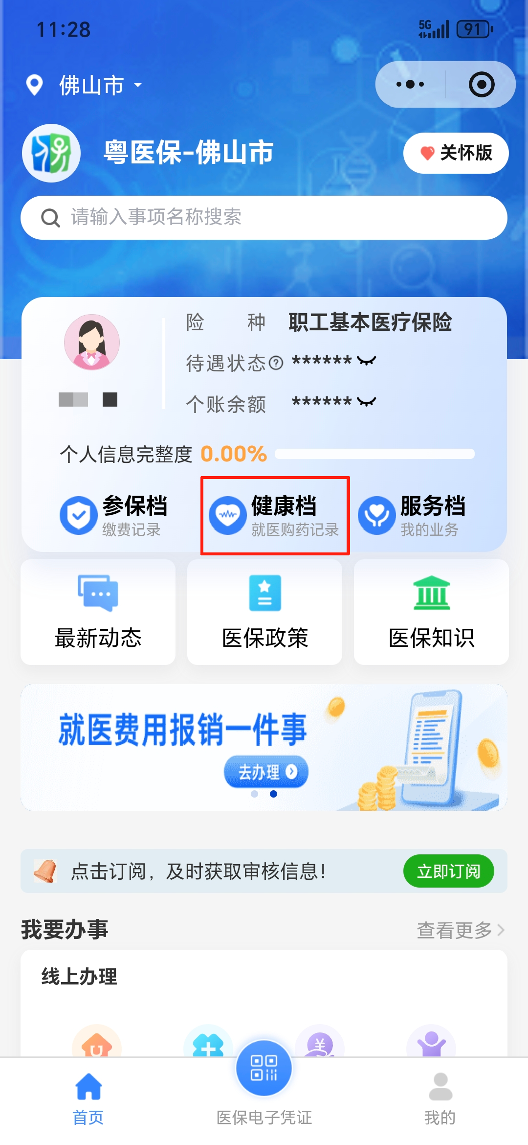 1、点击首页“健康档”进入我的医保档案。