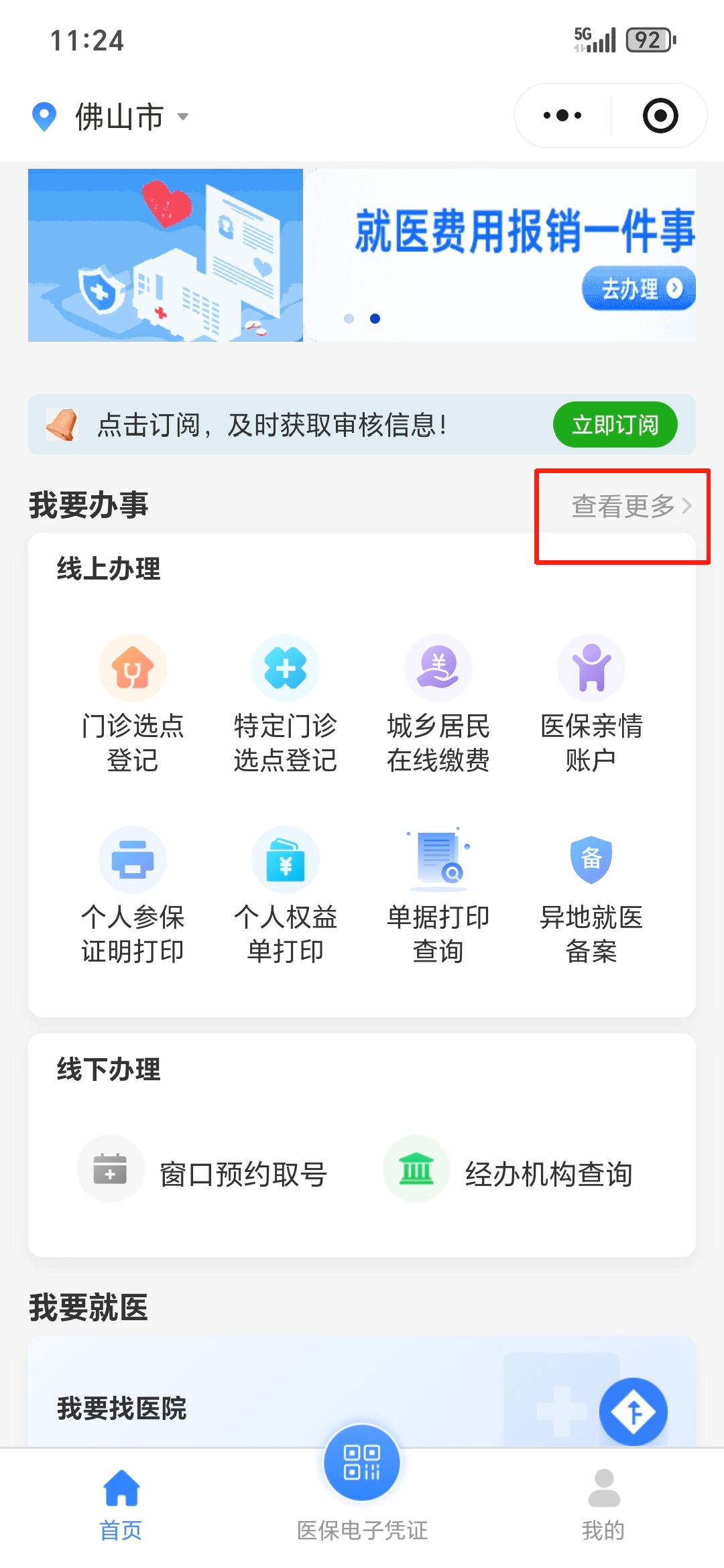 也可以点击首页“我要办事-查看更多”