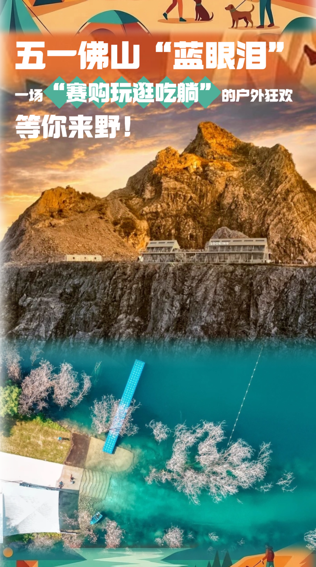 4月30日—5月3日,“山水佛山·自在户外”2026年粤港澳大湾区(佛山)户外运动季暨“四山两江”户外生活大会选址三水区南山镇“蓝眼泪”矿山湖。届时,环跑粤径山野挑战赛、广东省定向联赛等七大户外竞赛开启,露营市集、户外硬核装备补给仓、房车营地等五大体验区火热迎客,旨在打造集赛事竞技、户外体验、休闲消费于一体的户外生活盛宴。