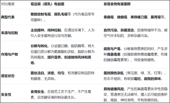 ✅ 霉制食品:如霉豆腐、霉干菜等,是在可控条件下由特定有益霉菌发酵制成的。这些“好霉菌”能分解食物成分,生成对人体有益的活性物质,并提升风味。