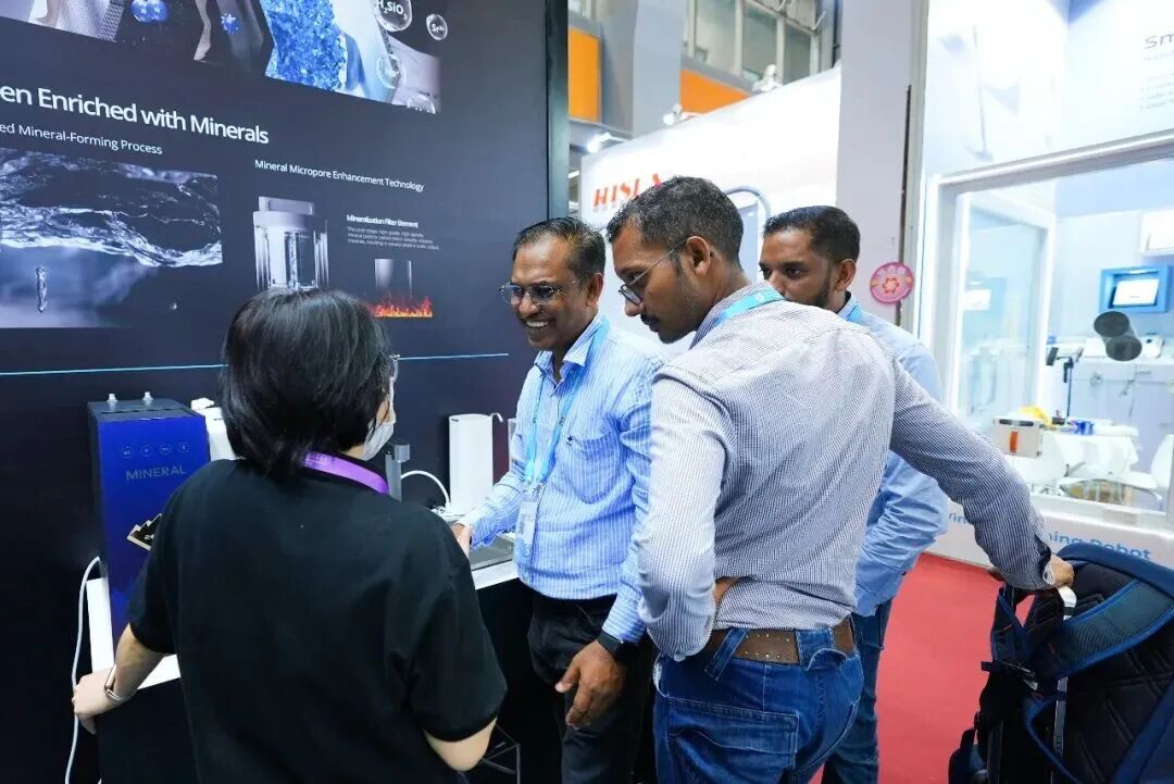 云米凭借净水、咖啡机、制冰三大核心品类产品,成为展会热门展台,CCTV-2财经频道聚焦报道中东采购商深度洽谈合作时,云米展台多次出镜。