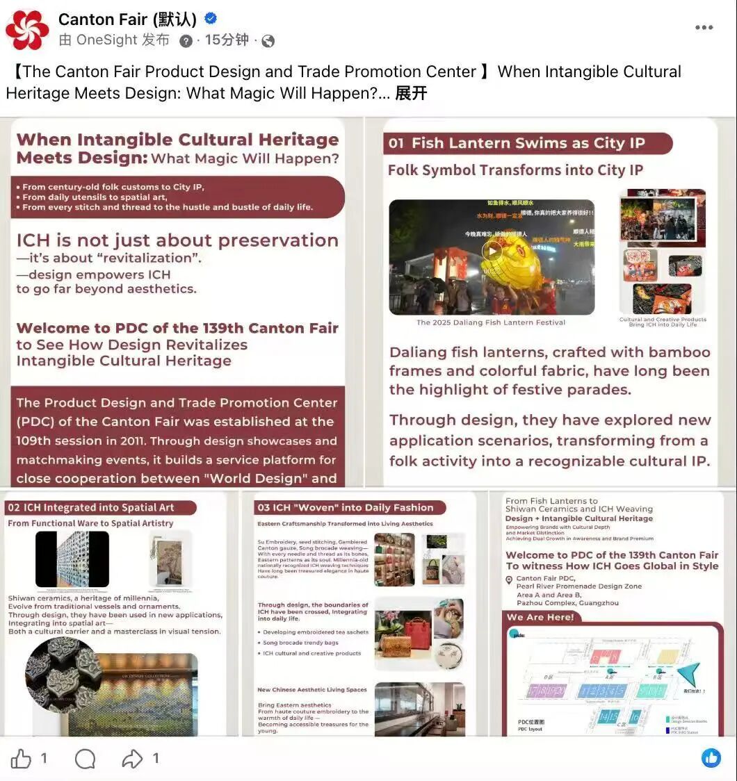 第139届广交会于4月15日在广州开幕。作为本届展会的一大亮点,由佛山市顺德工业设计协会牵头,佛山市顺德区大良街道宣传文体旅游和教育办公室、佛山市顺德区清晖岁月文旅产业有限公司支持,佛山市顺德区大良鱼灯协会设计制作的“传统非遗元素的工业化应用——大良鱼灯”展示内容,成功入选广交会产品设计与贸易促进中心(PDC)官方海外推广优选案例。该展示将于4月23日至27日在广交会正式亮相,向全球客商呈现“工业设计赋能非遗”的顺德方案。