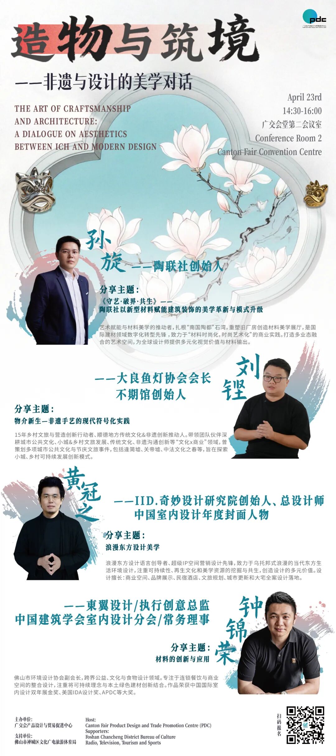 4月23日14:30至16:00,大良鱼灯协会会长、不期馆创始人刘铿将出席广交会堂第二会议室参加“造物与筑境——非遗与设计的美学对话”,围绕“物介新生一非遗手艺的现代符号化实践”,分享非遗鱼灯现代化、市场化实践内容。