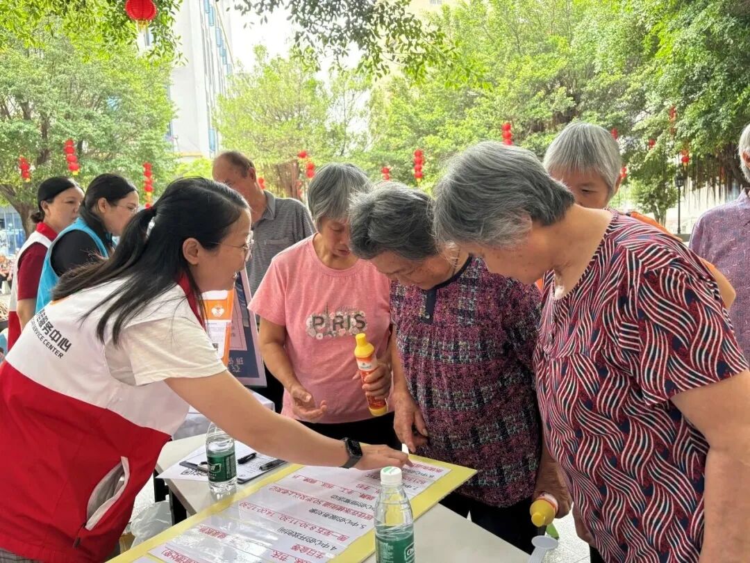 此外,双百社工和张槎居家养老服务中心通过问答形式,向长者们宣传解读相关福利政策,帮助长者明晰政策、享受红利。莲塘村网格员还向村民发放灭蚊片,通过宣传单和现场讲解普及灭蚊小妙招,做好防蚊灭蚊准备工作。社工与志愿者分工明确,穿梭于各摊位之间,耐心接待每一位长者,赢得了广泛认可。
