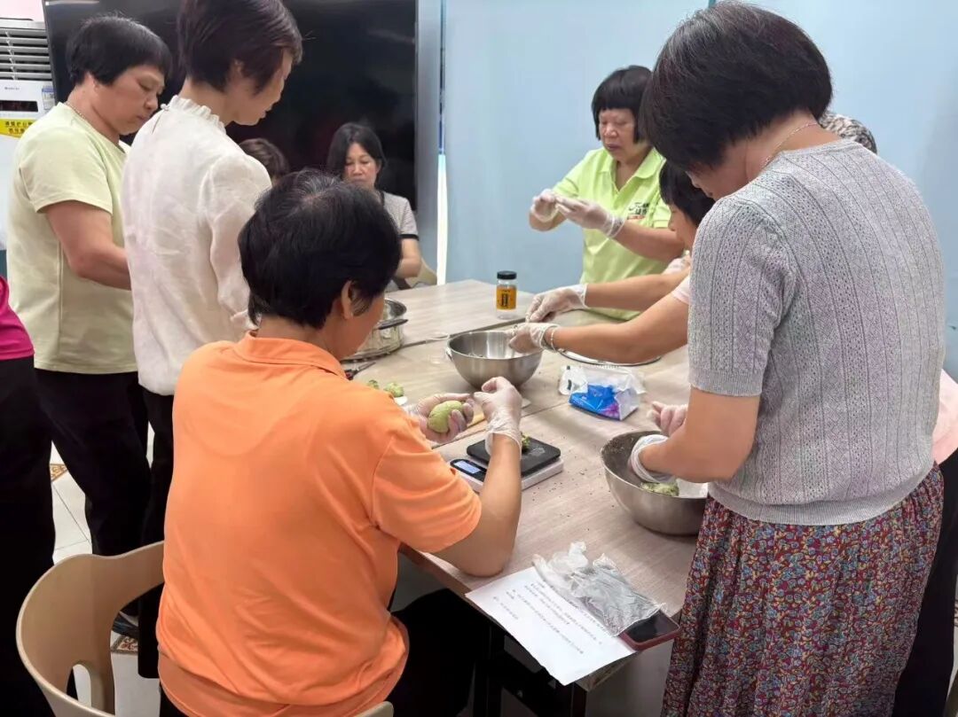 讲座后的艾糍制作环节更是其乐融融。长者们揉面团、包馅料、捏形状,从艾草汁与糯米粉的融合到馅料的搭配,每一步都认真对待。不一会儿,一个个翠绿圆润、软糯可爱的艾糍便成型了,现场弥漫着淡淡艾香。李婆婆捧着亲手做的艾糍开心地说:“既学到了养生知识,又吃到了自己做的艾糍,心里比蜜还甜!”