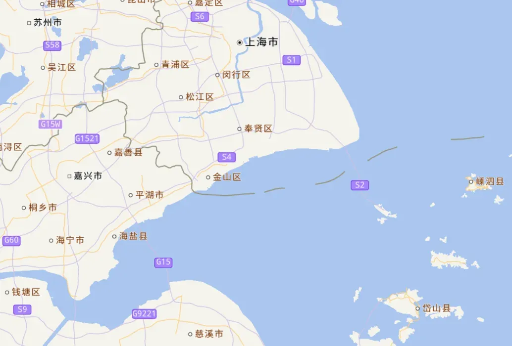 上海市金山区地理位置。来源/天地图
