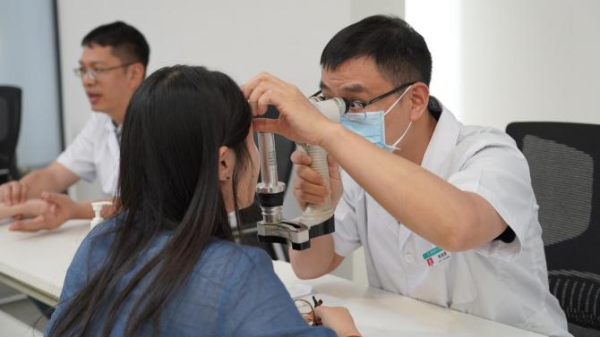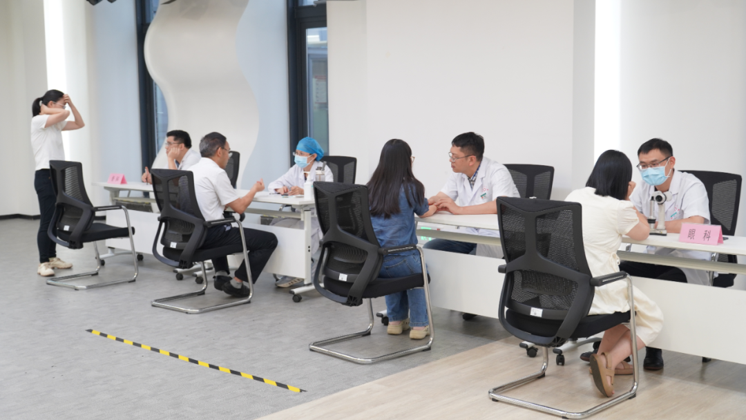 为切实把党建共建成果落到实处,参观结束后,南海区第八人民医院开展了公益健康义诊服务,针对科研工作者常见的颈椎腰椎劳损、用眼过度、亚健康疾病等问题提供个性化健康指导和诊疗建议。