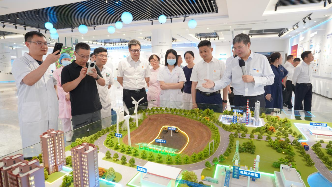 座谈结束后,杨图深书记一行参观了仙湖实验室科技展厅,了解了实验室在党建引领、人才队伍、平台建设、科研工作、成果转化、制度创新等方面的建设成效,听取了实验室关于氢能及氨氢融合新能源技术最新成果。