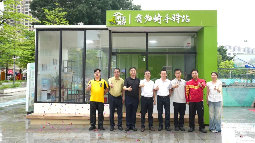 早在去年,丹灶镇便建成南海区首个骑手友好型产业园区,逐步构建起骑手“友好园区+友好商圈+友好小区”的全域服务版图,不断健全新就业群体参与社会治理的工作机制。