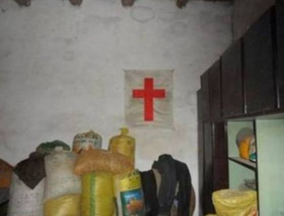 △在墙上悬挂“红十字旗”(组织内部称是“得胜旗”)是“门徒会”的标志之一