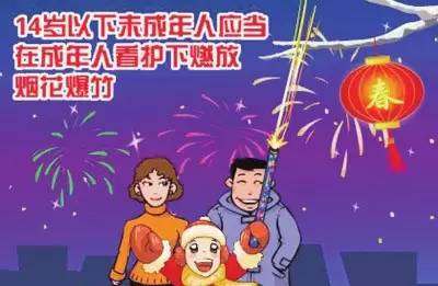 文明燃放烟花爆竹。不得向人群、车辆、航空器、建筑物、公共绿化地抛掷点燃的烟花爆竹;不要从建筑物内、屋顶、阳台向外抛掷烟花爆竹;燃放烟花爆竹的同时,切勿妨碍行人、车辆安全通行。