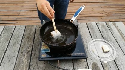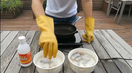 第三步,分别将正常带鱼和浸泡了福尔马林的带鱼进行油炸。