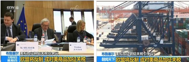 3、美欧将打贸易战?美新关税计划将在本周出炉 欧盟反制措施获通过 针对特朗普提出的将对进口钢铁和铝产品分别加征25%和10%关税的措施,欧盟委员会在7日的例行会议后宣布,当天的会议讨论并通过了一份针对美国加征钢铝关税出台反制措施的提案。(央视新闻)