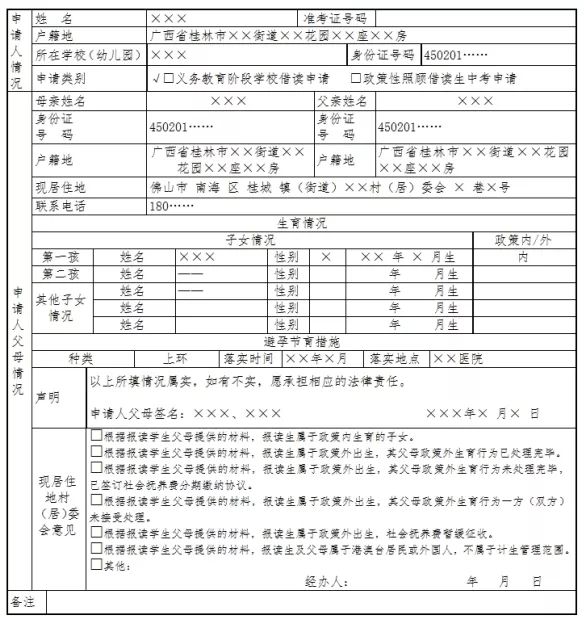 桂城街道办理《南海区非户籍常住人口子女政策性借读和中考申请计划生育情况审核表》温馨提示