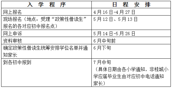 特别提醒:政策性借读生报名学校不一定是就读学校,政策性借读生就读学校要根据学位情况由桂城街道教育局统筹安排。