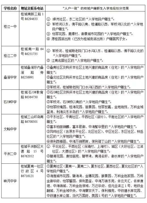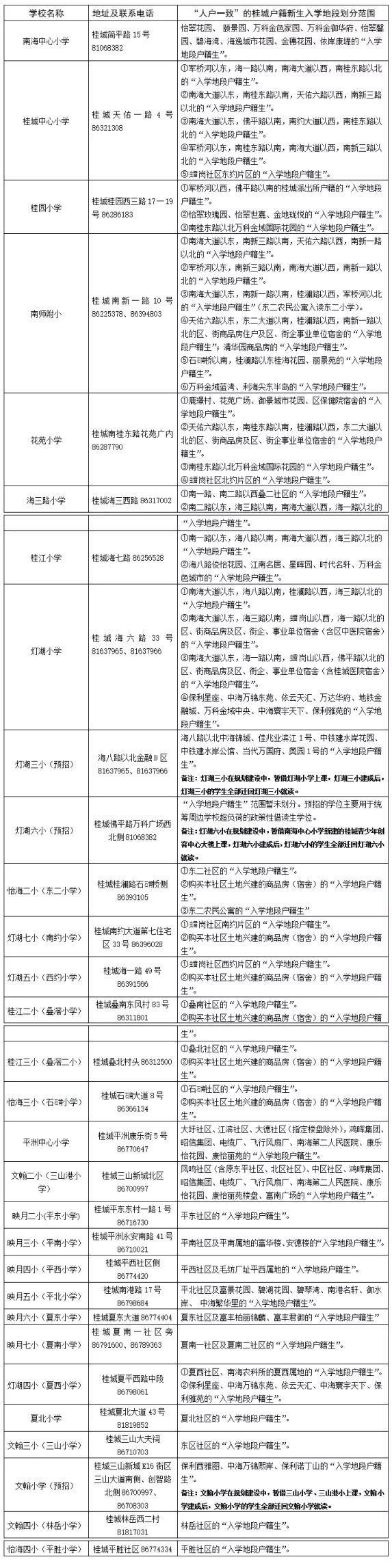 下表所指的“入学地段户籍生”是有时限性的,是指2018年 4 月 8 日前(含 4 月 8日当天)入户在册的地段户籍生。之后迁入的该地段户籍生由桂城街道教育局根据学位情况统筹安排到公办学校入读。