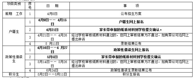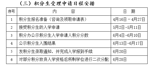 (四)各项入学证明材料、计划生育情况审核表、报名工作日程表、招生计划、积分入学流程等信息。