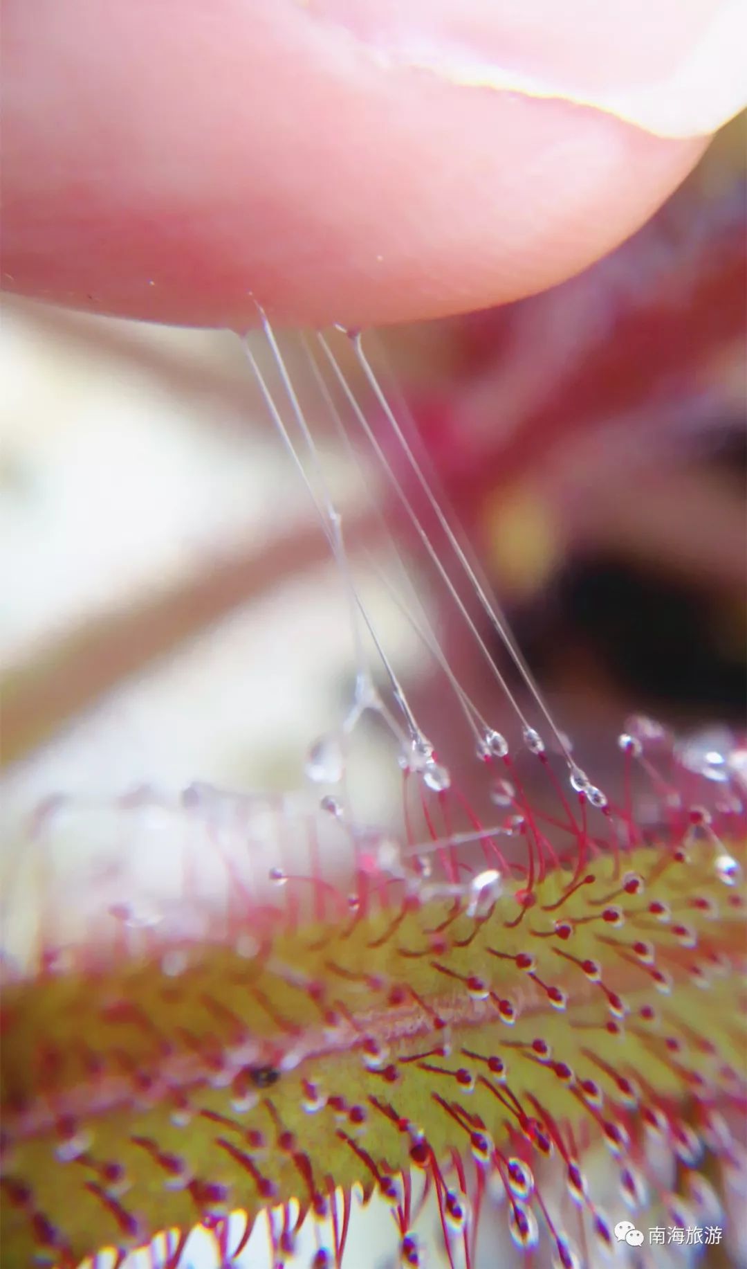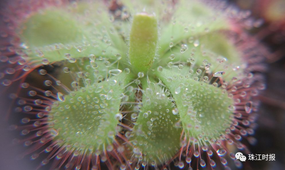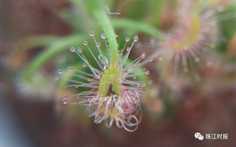 迷惑的长相→茅膏菜是食虫植物中的一种,一位深藏不露的捕虫能手。全身挂着晶莹剔透的“露珠”,blingbling很吸引眼球。但其实这些“露珠”其实是对昆虫来说最致命的武器。