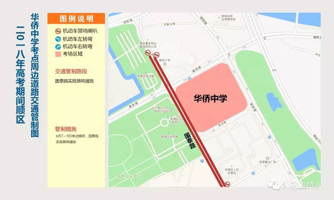 6月7~9日考试期间,国泰路实施禁鸣措施。