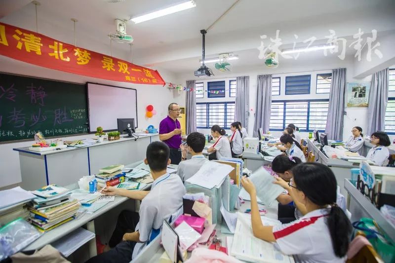 ▲顺德一中高三(16)班的老师为学生上考前课。/珠江商报记者周焯杰摄