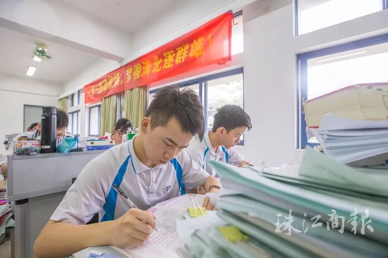 ▲杏坛中学学生在伦教中学复习,准备考试。/珠江商报记者朱德文摄