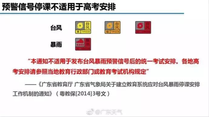 省气象专家提醒,恰逢高考,广东省会受较大的风雨影响。广东教育部门并非第一次碰到高考遇到极端天气,省考试院已有充分预案准备,望考生和家长放心,不要听信停考的猜测。建议学校和家长提醒考生提前赴考,确保准时安全到达考点。