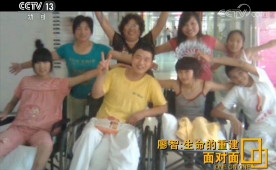 她被迅速送往医院,马上进行手术,当时母亲仍在从外地赶往医院的路上,父亲在倒塌的废墟那里守着廖智的婆婆和女儿,丈夫也不在现场,廖智自己在手术单上签了字。手术是在膝盖以下,双腿截肢。