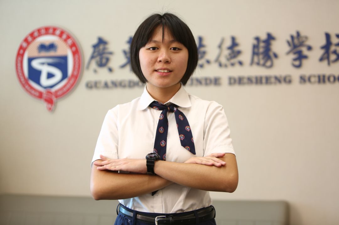黄靖然是一个阳光开朗的女孩,面对镜头会大方地比“V”。她说,在南海实验中学的三年,自己成长了很多,性格从害羞转变为外向,也学会了控制自己的情绪。