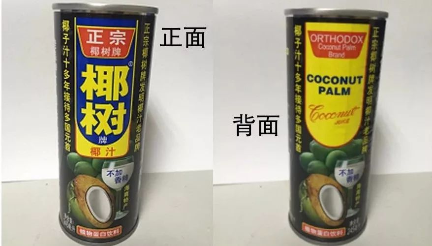 其次,针对椰树公司主张权利的包装、装潢是否为特有包装、装潢的问题,法院则认为易拉铁罐属于饮料食品包装行业中通用的包装,“椰树”椰子汁易拉罐包装的形状亦无区别商品来源的显著特征,故不具有特有性。但“椰树”椰子汁所使用的罐贴于2005年7月15日申请外观设计专利,并于2006年5月24日被授权公告。该装潢由一系列文字、图形、色彩等排列组合而成,具有独特性,虽然该装潢在后来的实际使用过程中有所调整,但主要是部分文字内容的调整,图案、色彩、构图、字形及各要素的组合并无实质性的变动,即其已形成的显著的整体形象并未发生改变。经过长时间使用和大量宣传,已足以使相关公众将上述装潢的整体形象与椰树公司的“椰树”椰子汁产品联系起来,具有识别其商品来源的作用,属于依法受保护的特有装潢。