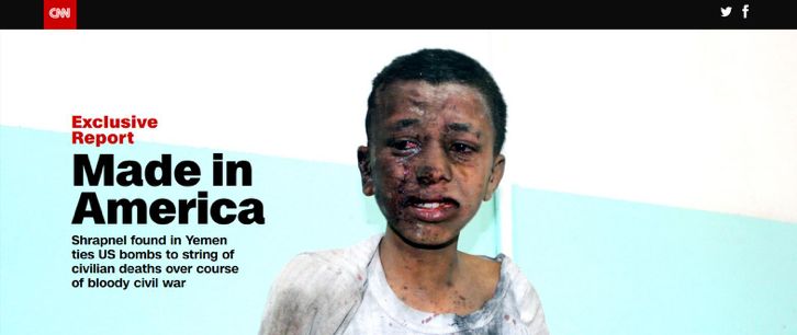 2、原来特朗普口中的“美国制造”用来干了这个!18日,美国有线电视新闻网以“美国制造”为题,发布了独家报告,历数也门战事爆发以来所发现的美国制造武器,以及它们对也门人民造成的伤害。报告称,几乎在每一起事件当中,美国制造的炸弹都造成了也门民众不同程度的伤亡。(环球网)