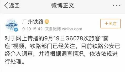 长沙客运段工作人员告诉记者,当天的 G6078 次列车上,确实出现了 " 霸座 " 现象。视频中的女乘客由永州站上车,前往广州南。她所坐的靠窗的座位不是她自己的,而是另一名女乘客的。