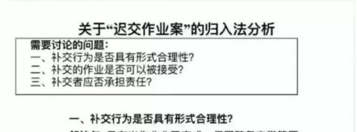 在收到许同学的《论迟交作业之合理性》之后,马老师反手又回了一份《 关于 “ 迟交作业案 ” 的归入法分析 》。