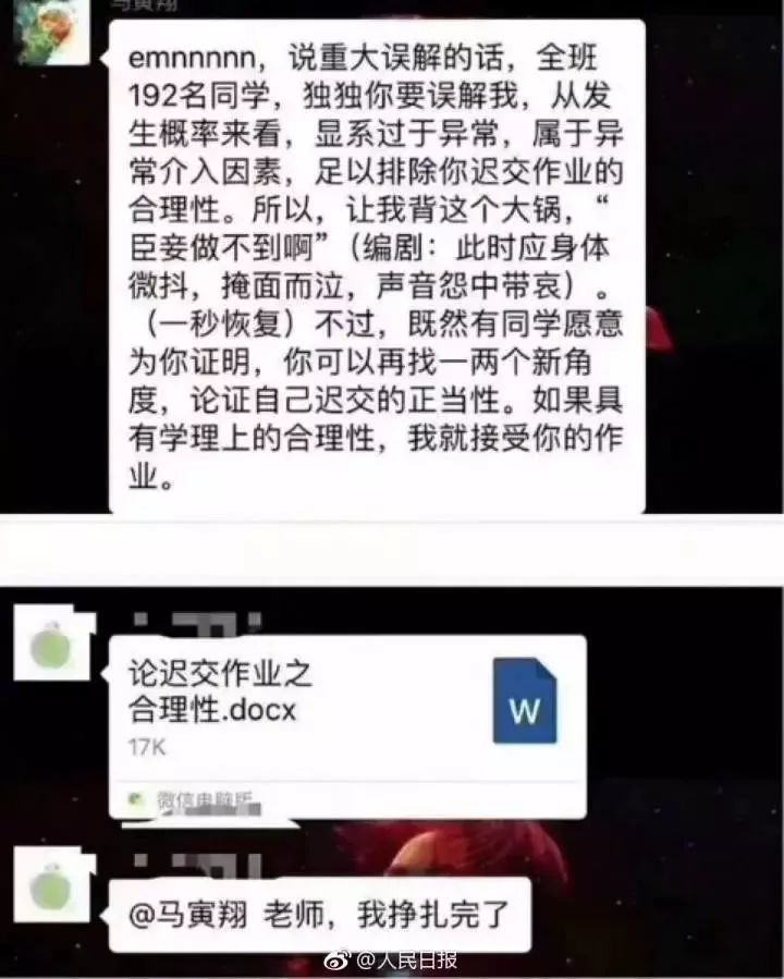 写到此处时,鄙人发现朋友圈上已有同学对此事进行了转发,以朋友圈的信息传递速度,可以预见 “ 迟交作业的正当性 ” 之争已经有了一定的关注度。恳请老师能在这么多期待着裁决结果的热切的目光的注视下,网开一面,向广大同学一展华政老师虽遵循着铁面法律也还有人性的温度的风采。