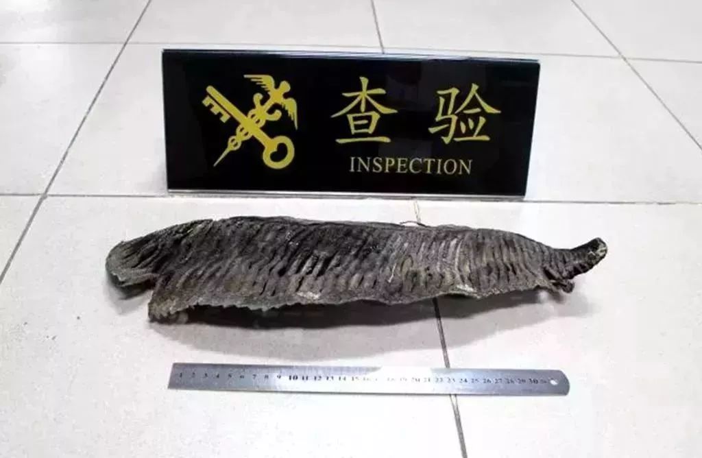 2018年5月,海关从一入境内地旅客行李中截获濒危物种制品双吻前口蝠鲼鳃,该旅客自称物品为药用。