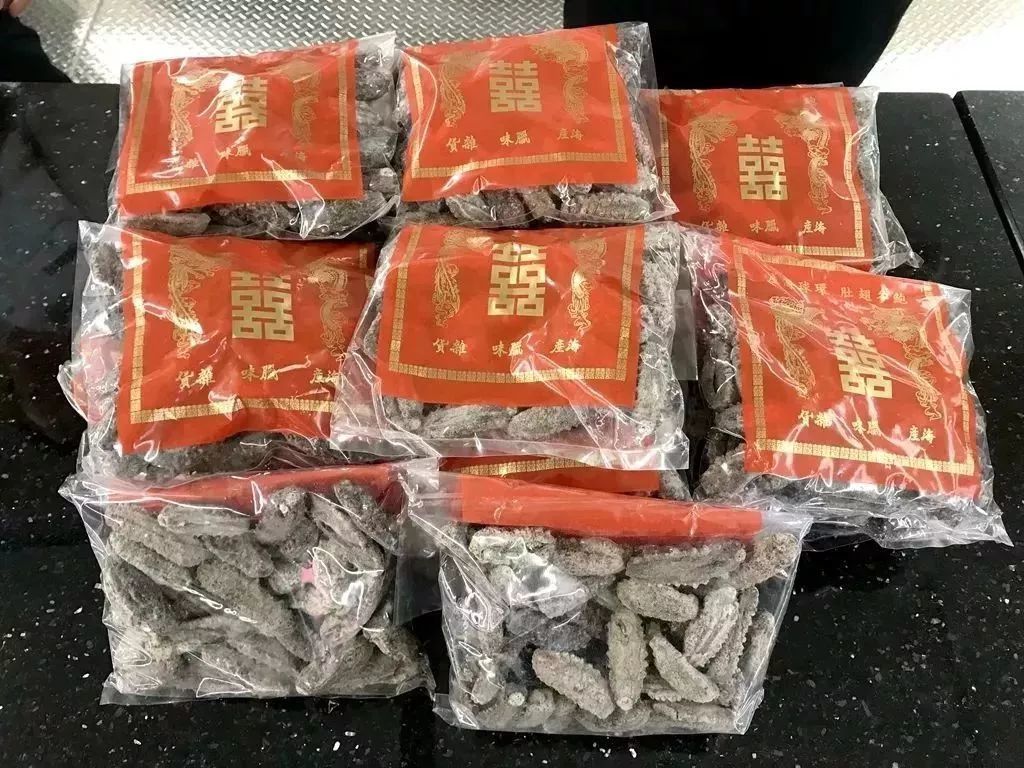 11月29日,海关在港珠澳大桥珠海公路口岸入境客车道,查获香港籍旅客携带24包总重12公斤干海参入境。