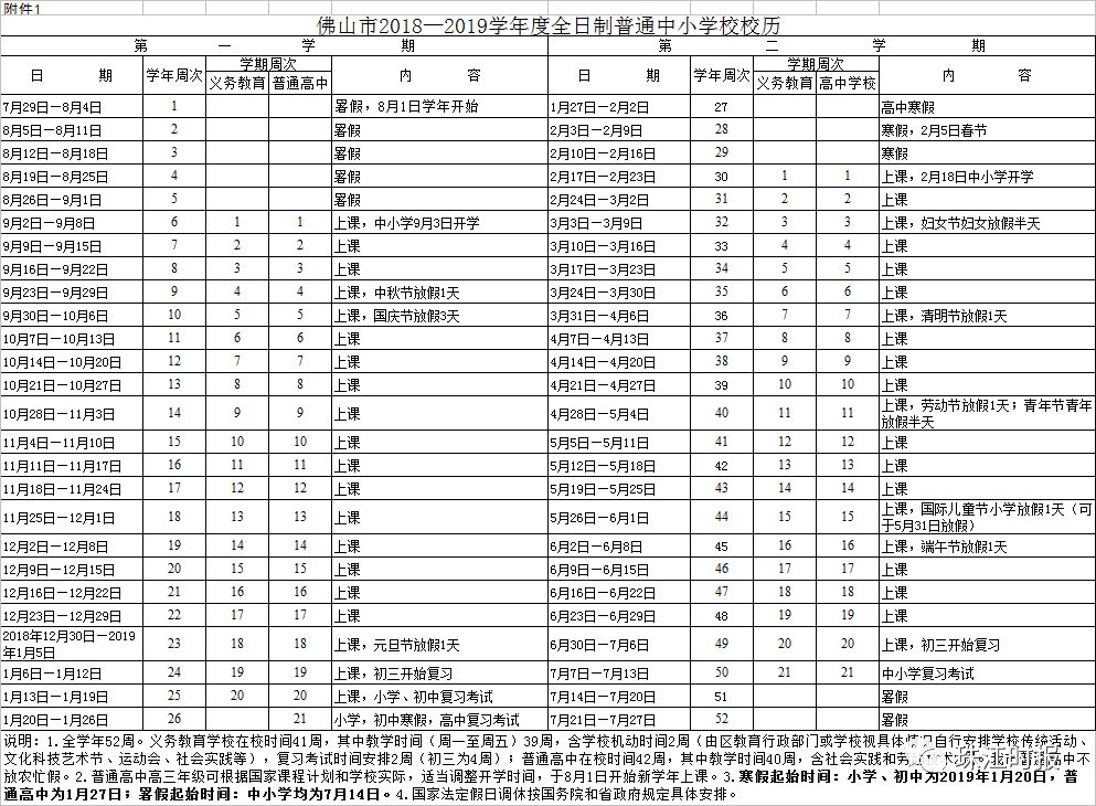 根据佛山2018-2019学年度全日制普通中小学校校历: