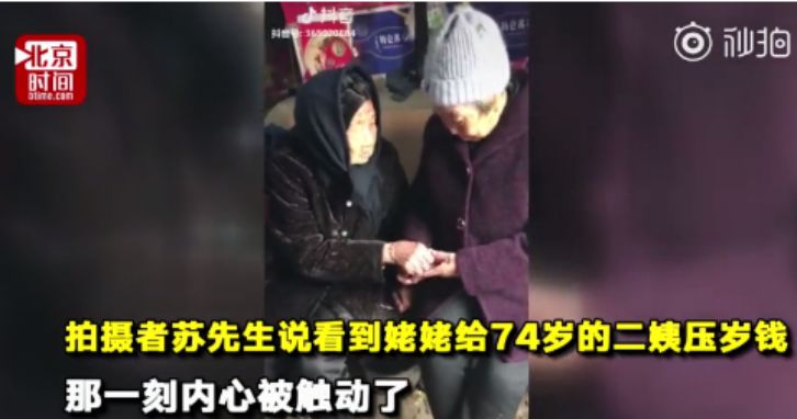 2、感动泪奔!105岁母亲给74岁女儿压岁钱 网友:在妈妈眼里永远是孩子 6日,江苏连云港,一段105岁的老人过年给女儿压岁钱的视频在网上获赞百万。拍摄者苏先生说看到姥姥掏钱给74岁的二姨压岁钱,那一刻内心被感动了。(@时间视频)