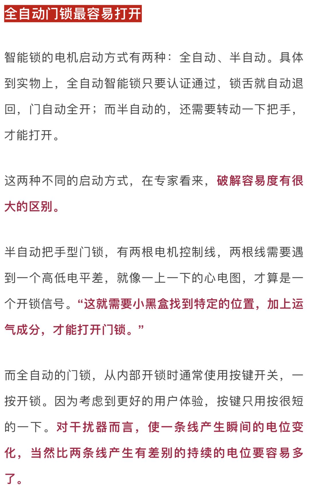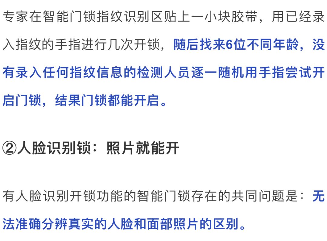 ①指纹识别锁:存较高风险
