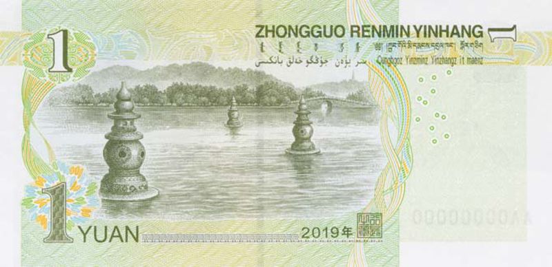 2019年版第五套人民币50元、20元、10元、1元纸币调整正面毛泽东头像、装饰团花、横号码、背面主景和正背面面额数字的样式,增加正面左侧装饰纹样,取消正面右侧凹印手感线和背面右下角局部图案,票面年号改为“2019年”。