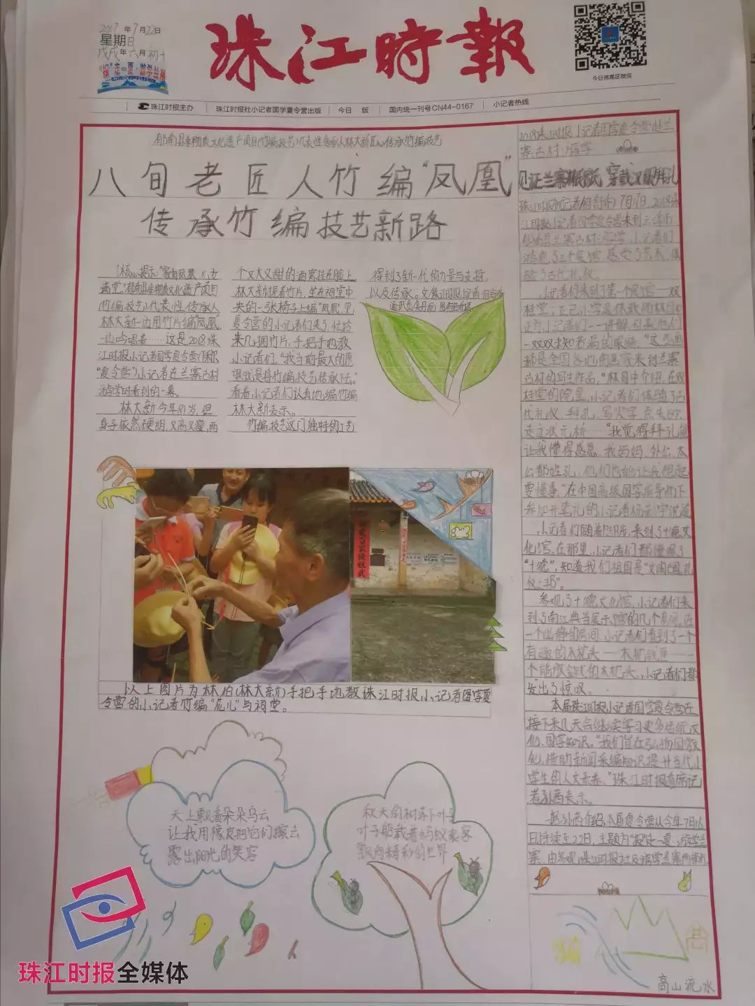 珠江时报“国学新闻夏令营”自从去年开班后,受到了广大市民的关注,尤其是家长、学生的喜爱。一周的兰寨游学之旅,学习新闻写作、制作专属报纸、体验非遗文化、动手造纸和捏糍粑……每一天行程,都是独家记忆;每一次活动,都用新闻记录。