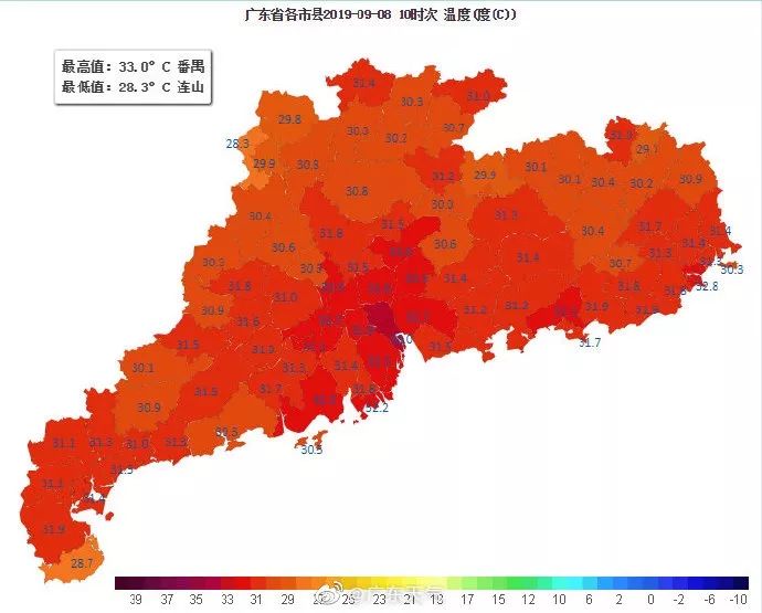 9月10日:多云,有阵雨或雷阵雨,气温27~34℃;