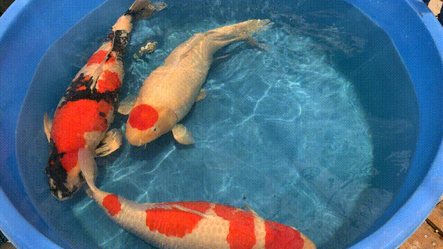 4岁的锦鲤品种“红白”,体长80cm。“红白”给人的第一印象是"夺目耀眼”,闪耀的鳞片反射着银光,摸上去如覆盖着一层油脂,滑溜溜!白质特别瓷白,红质特别鲜艳。